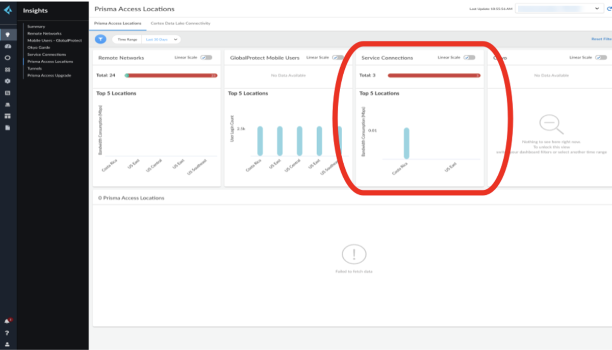 You can view the service connection bandwidth consumption managed by a specific Prisma Access location